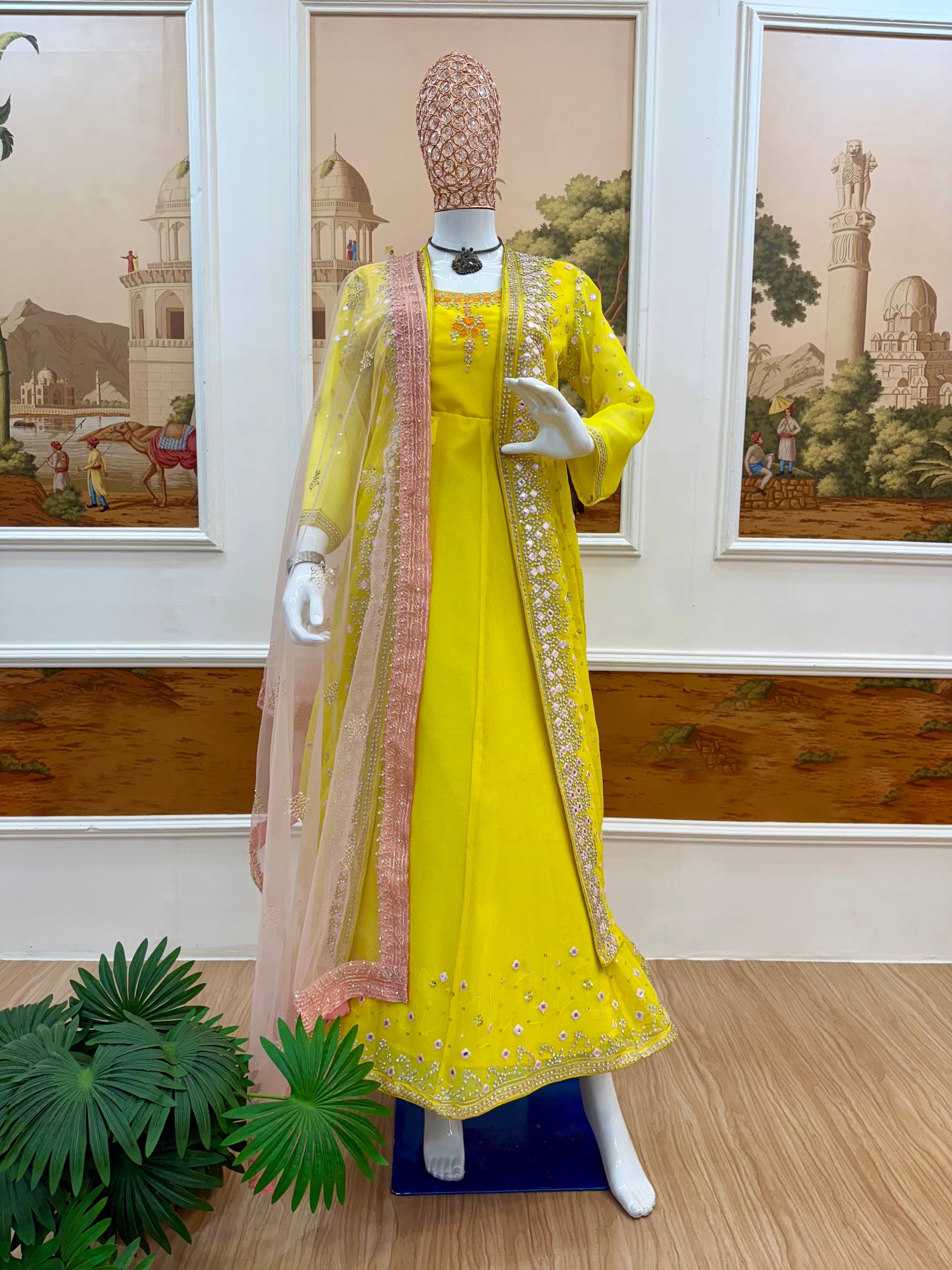 GOWN, KOTI & DUPATTA SET WITH EMBROIDERY WORK & CRYSTAL STONE WORK
