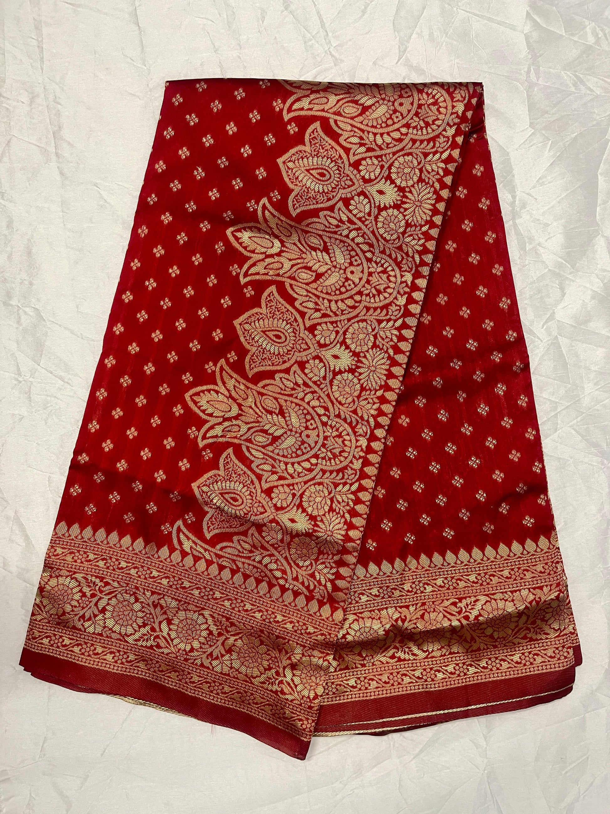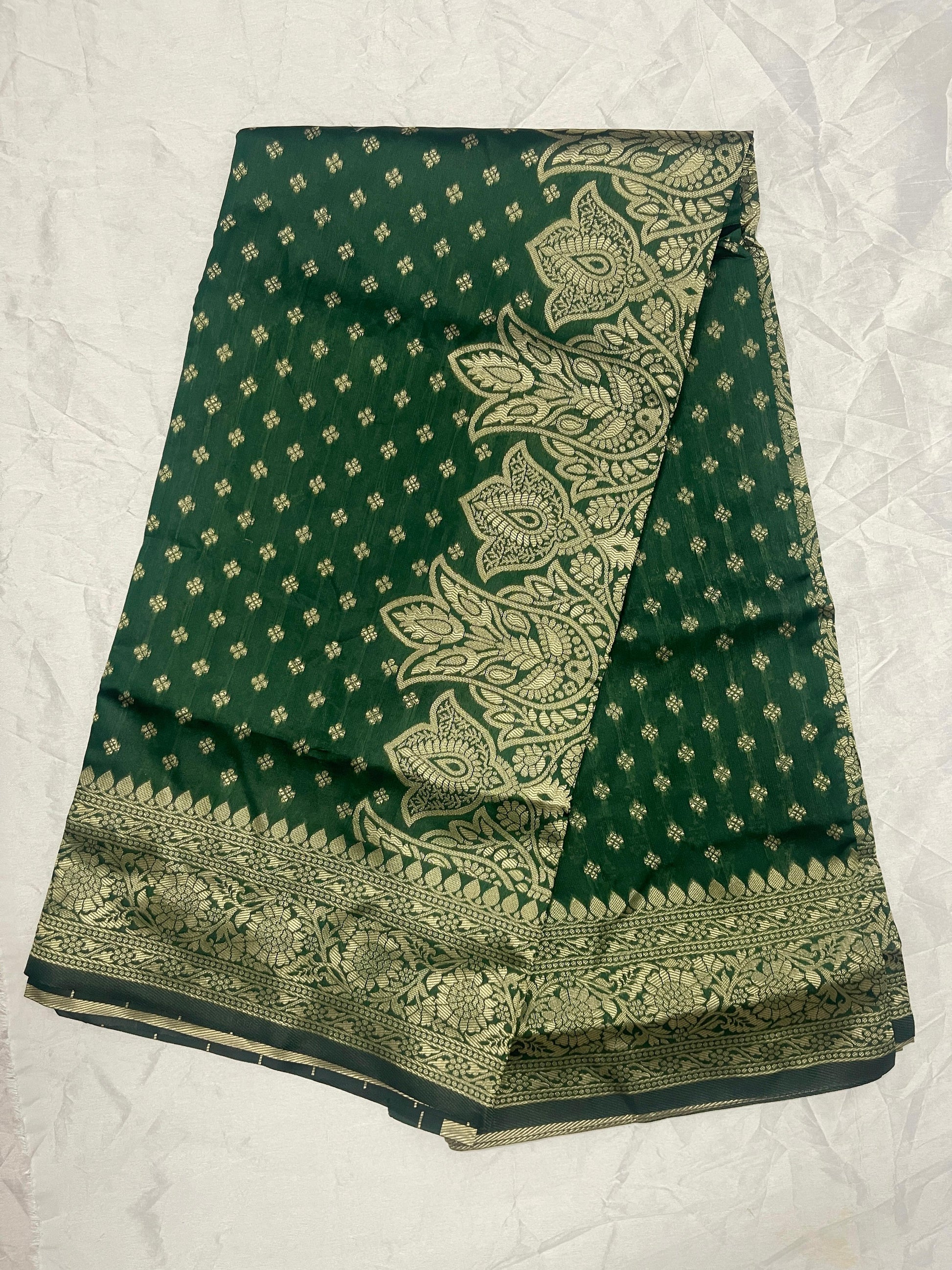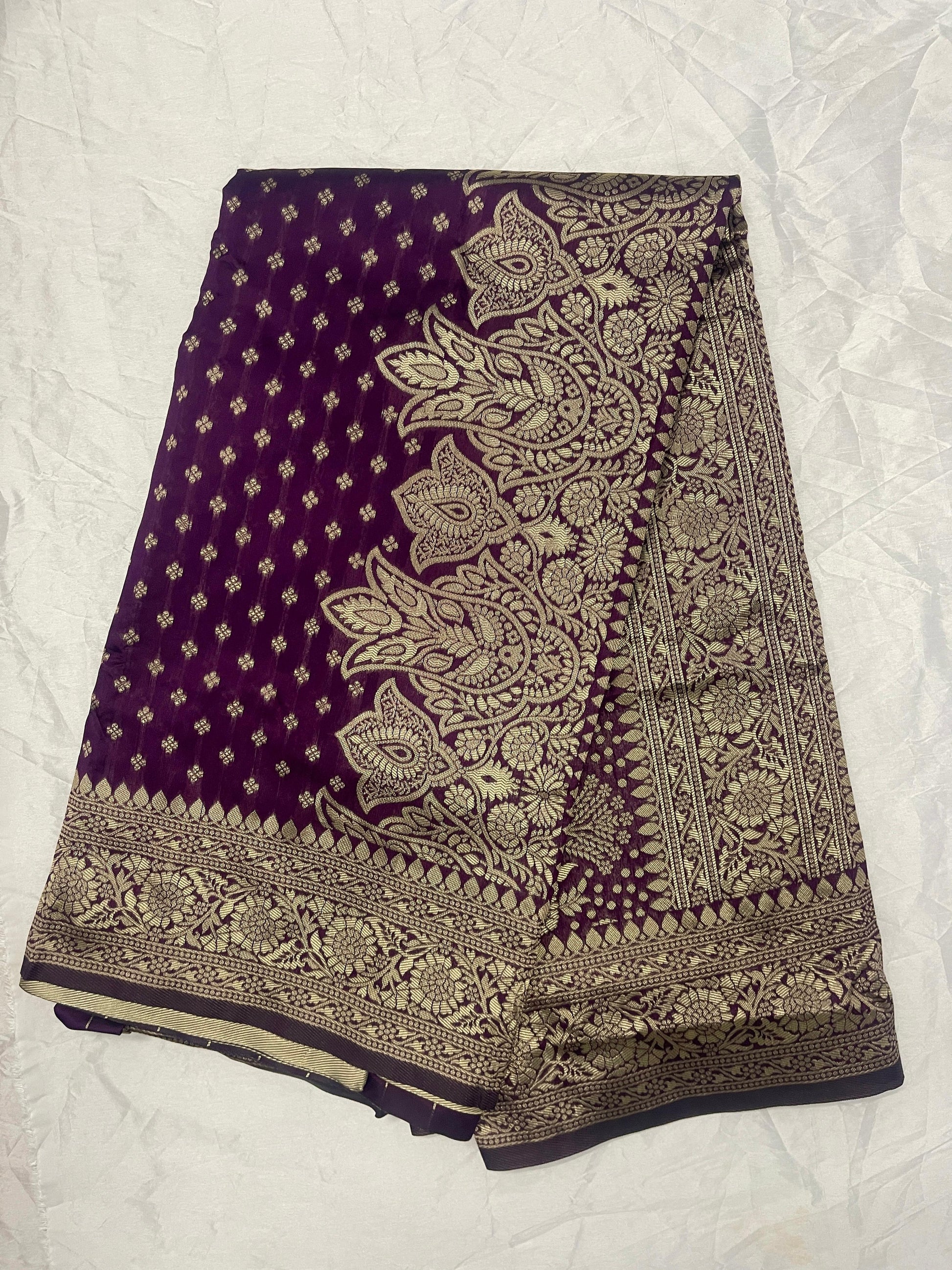 Design:ย All-over zari buttas with rich floral brocade pallu and zari borders