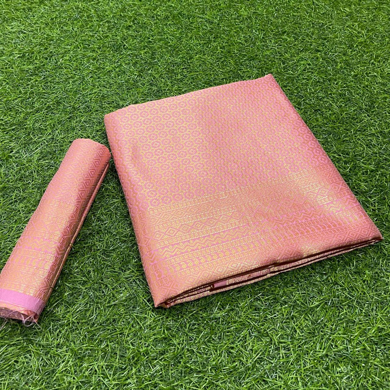 Peach Color Soft Silk Banarasi Saree With Copper Zari Work